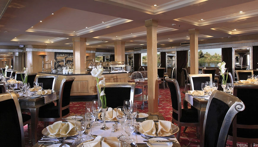 Enjoy dinner with live music and a disco onboard. Overnight stay on the cruise in Luxor.