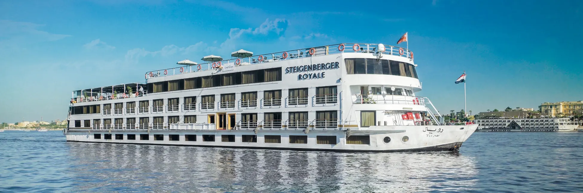 The Steigenberger Royale Nile Cruise is a deluxe floating hotel offering an exceptional level of comfort, elegance, and space. Designed to meet the expectations of luxury travelers, this cruise combines sophisticated interiors, comprehensive leisure facilities, and Steigenberger’s renowned service standards, creating an unforgettable journey along the Nile.